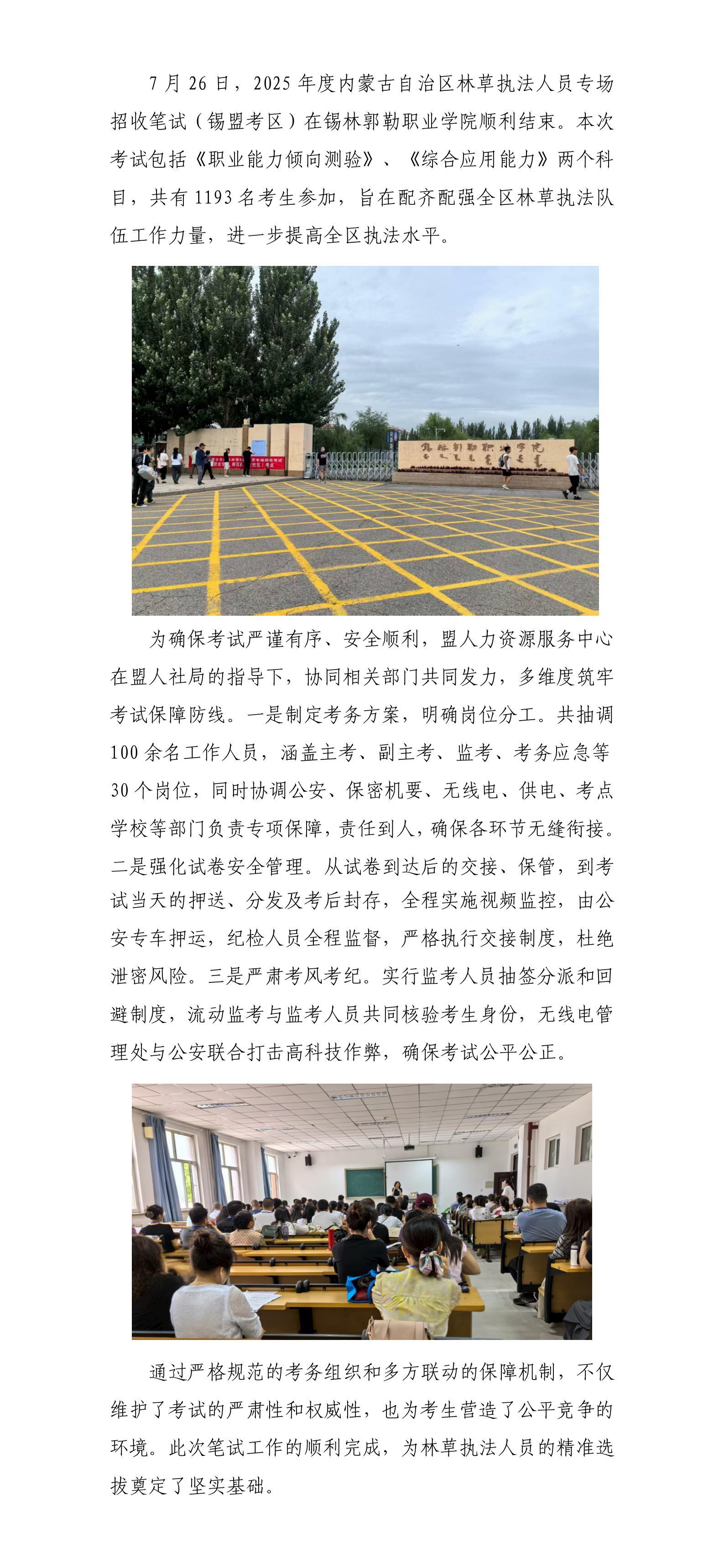 2025年度內(nèi)蒙古自治區(qū)林草執(zhí)法人員專場(chǎng)招收筆試工作(錫盟考區(qū))順利結(jié)束